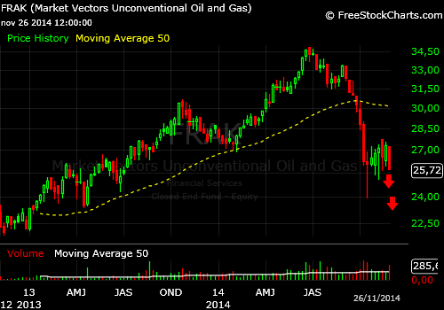 El sub-sector energético dedicado al empleo de técnicas fracking ha perdido desde junio cerca del 40%, el aspecto técnico es de continuación bajista.