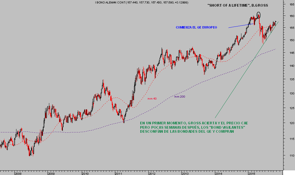 El programa comenzó su andadura en marzo y poco después, el prestigioso analista y ex gestor del mayor fondo de renta fija del mundo, Bill Gross, afirmó que los bonos alemanes estaban excesivamente caros y anticipaba una oportunidad histórica para aprovechar caídas de precio.