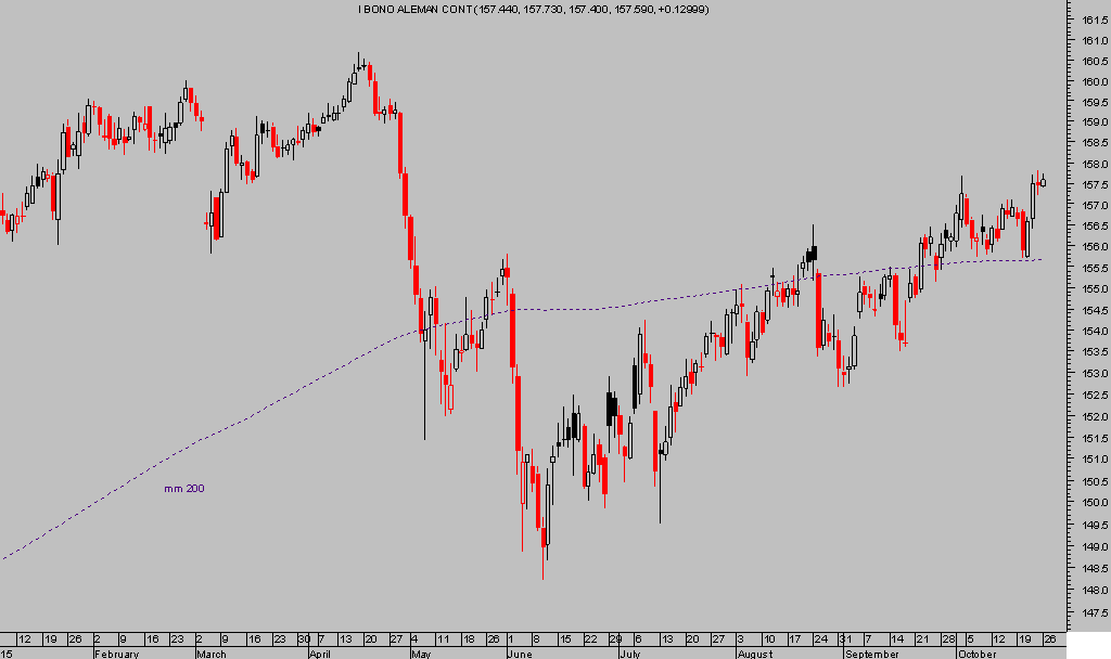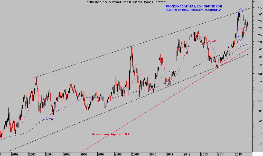 La situación del mercados de bonos USA es prácticamente igual que en Europa. El bono por excelencia, T-Bond, presenta una imagen análoga a la del Bund