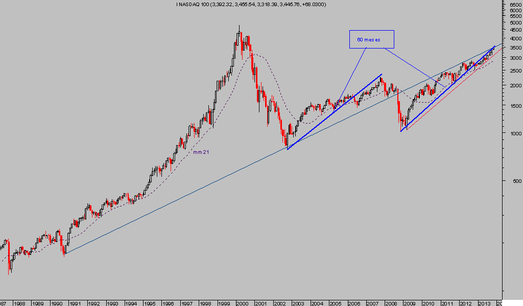 El gráfico anterior es un subindice «selectivo» del Nasdaq Composite, que recoge a las 100 empresas más importantes. No obstante, el comportamiento en bolsa es prácticamente igual.