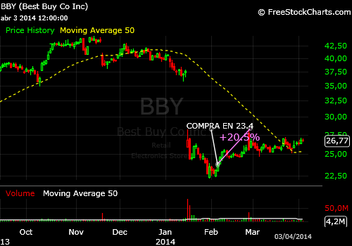 La siguiente recomendación concreta fue publicada el día 6 de febrero, Nueva oportunidad del 25%, sobre el valor Best Buy, cotizado en el NYSE bajo símbolo BBY