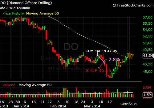 Las malas noticias también se han producido y la recomendación con resultado menos favorable ha sido el propuesto el pasado 6 de marzo OPORTUNIDAD TRADING, +14% sobre una empresa americana del sector petrolífero.