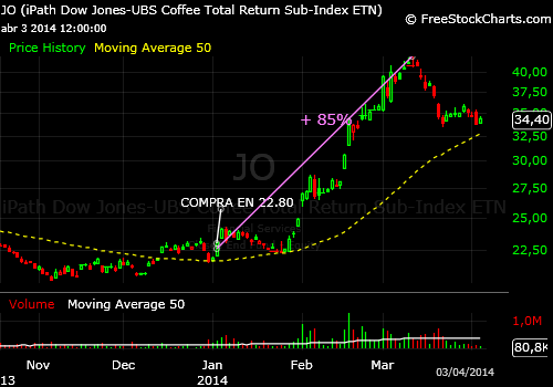 El activo, alimento, en cuestión es el Café, a través de su ETF cotizado en el NYSE bajo el símbolo JO