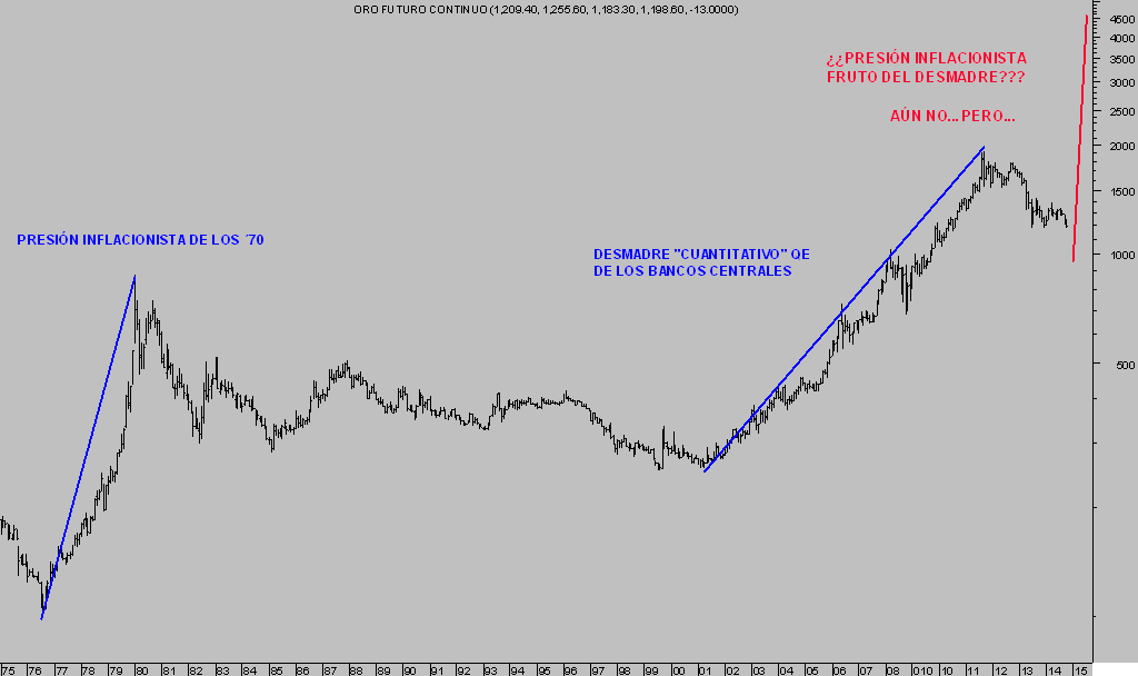 Recordemos que desde la retirada del Gold Standard el ORO se ha convertido en enemigo de los bancos centrales, por su capacidad de actuar de testigo ante los desmanes de los banqueros centrales. Greenspan definió en su día, previo a su elección como presidente de la FED, claro, la nueva después de que Nixon decidiera en 1.971 eliminar al ORO como patrón de referencia monetaria:
