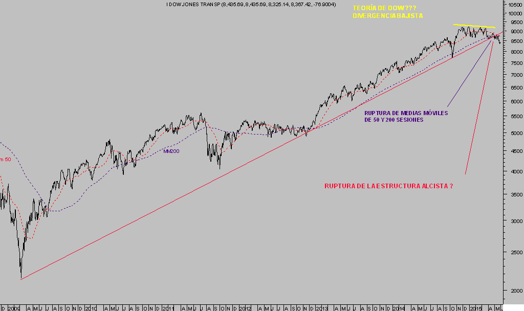 Representado en el mercado a través del índice Dow Transportes está siendo objeto de análisis y seguimiento en distintos post desde que a principios de año comenzó a dibujar una divergencia bajista según la Teoría de Dow, que está intensificando.