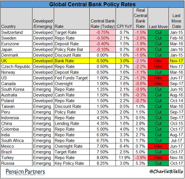 A pesar de la subida, los tipos reales USA (restada la inflación) cotizan aún en terreno negativo, igual que en la mayoría de países avanzados, desvelando el carácter estructural de los problemas de fondo de la economía global, vean cuadro: