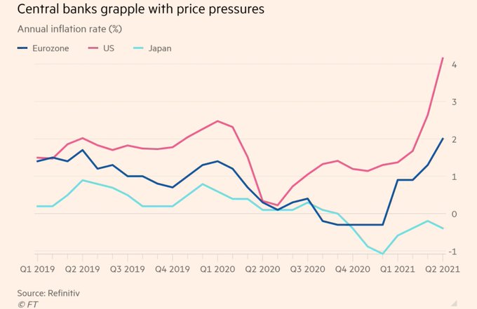 Precisamente, el ex presidente de la FED de Nueva York, Sr Dudley, afirmó ayer que la inflación efectivamente será transitoria pero… «inflation is likely transitory for now, but could become more persistent in the coming years«.