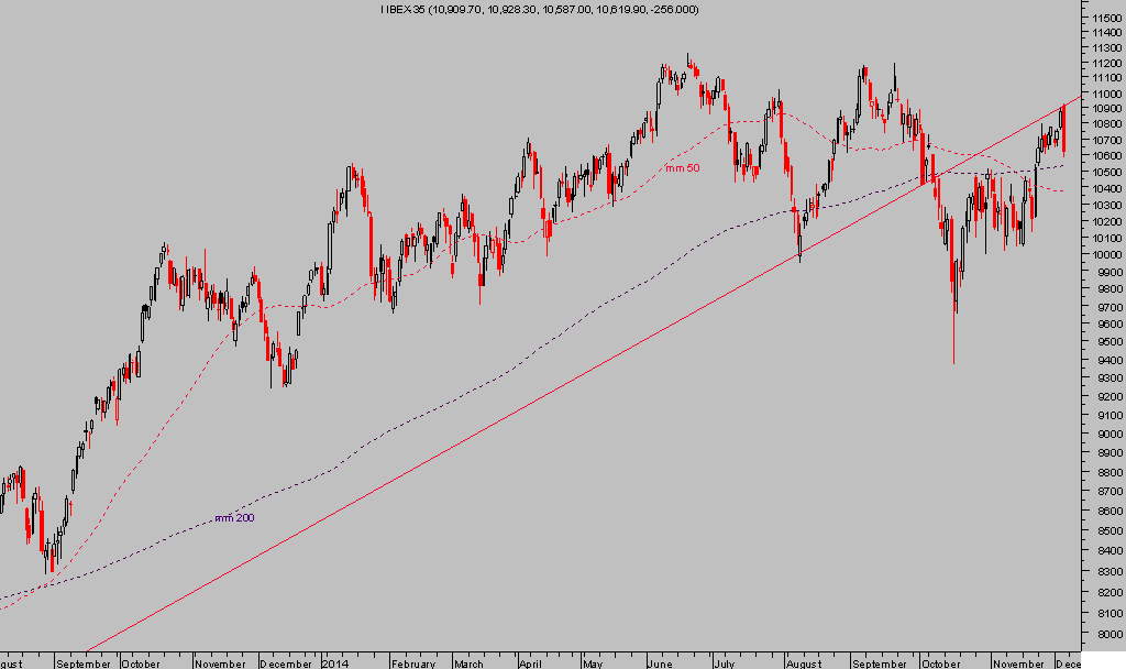 La reunión del BCE mantenida ayer, resultó en la decepción esperada para los inversores por los motivos expuestos en el post del 1 de diciembre.«… Con este panorama de fondo, la posibilidad de que el BCE defraude en su reunión del jueves, es muy alta…. Especialmente peligroso para el mercado después de la carrera alcista de los índices de renta variable durante las pasadas 6 semanas, DAX +20%, CAC +16.2%, IBEX +14.9%».