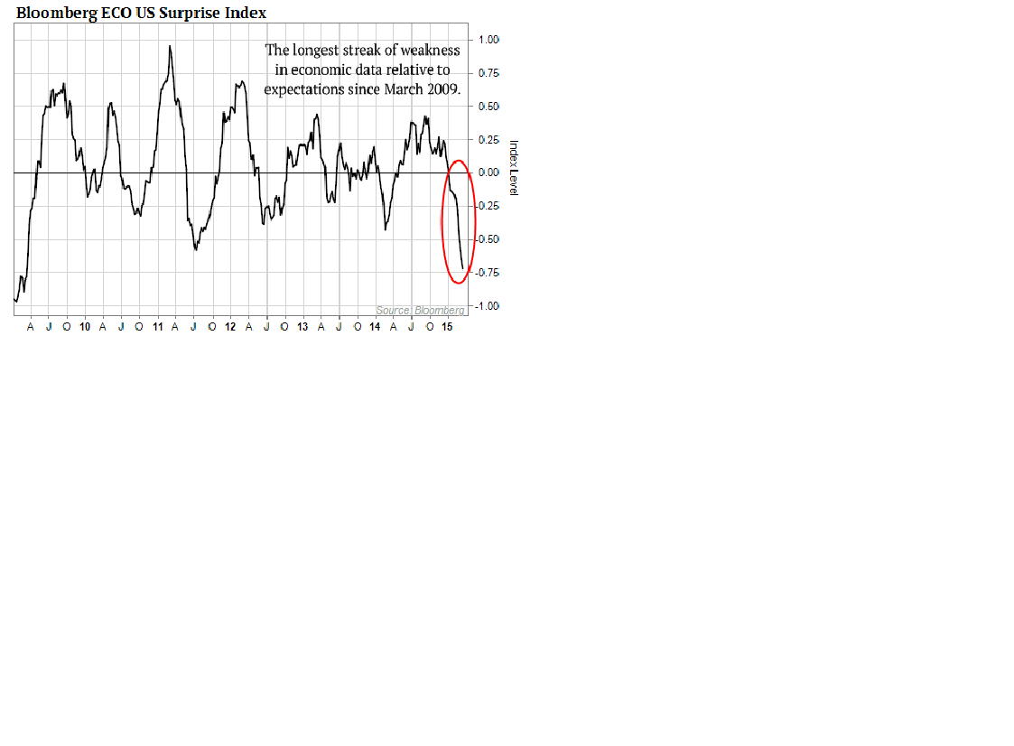 El índice de sorpresas de Bloomberg, ECO US Surprise Index, que mide las sorpresas positivas o negativas de los datos publicados respecto de las previsiones, acaba de alcanzar el nivel más bajo desde 2009, con la economía en la peor recesión desde la del ´29.