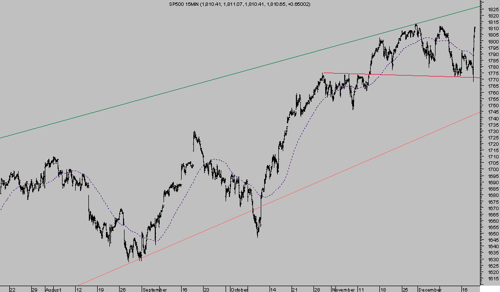 El aspecto técnico de más corto plazo ha mejorado tras la inesperada respuesta de los inversores, más de los apuntaladores, dando inicio al rally de navidad, motivado también por la triple hora bruja de mañana, es decir, por apuntalamiento adicional.