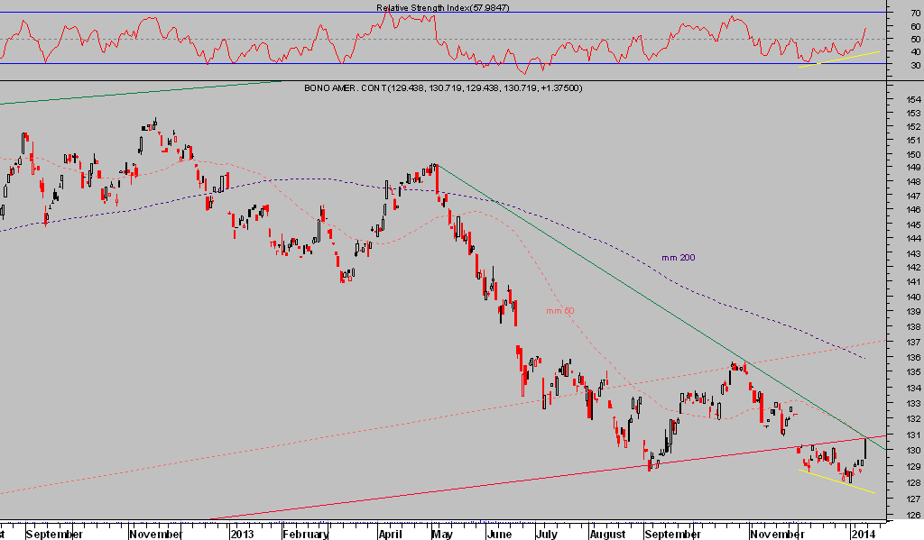 Realmente, el aspecto técnico del T-Bond ha mejorado sustancialmente en las últimas sesiones, mostrando divergencias alcistas, lectura de pauta muy probablemente cumplida, lecturas de velas mensuales prometedoras -aún por confirmar suelo-, ataque a la mm50 en desarrollo, etc…