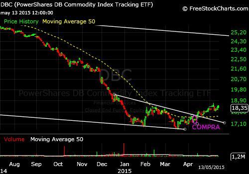 El post del día anterior a la recomendación del Dólar, recomendaba también la compra de otro ETF con muy buenas perspectivas en el entorno de mercados de entonces, y actual, cuyo aspecto técnico se presentaba también muy favorable.
