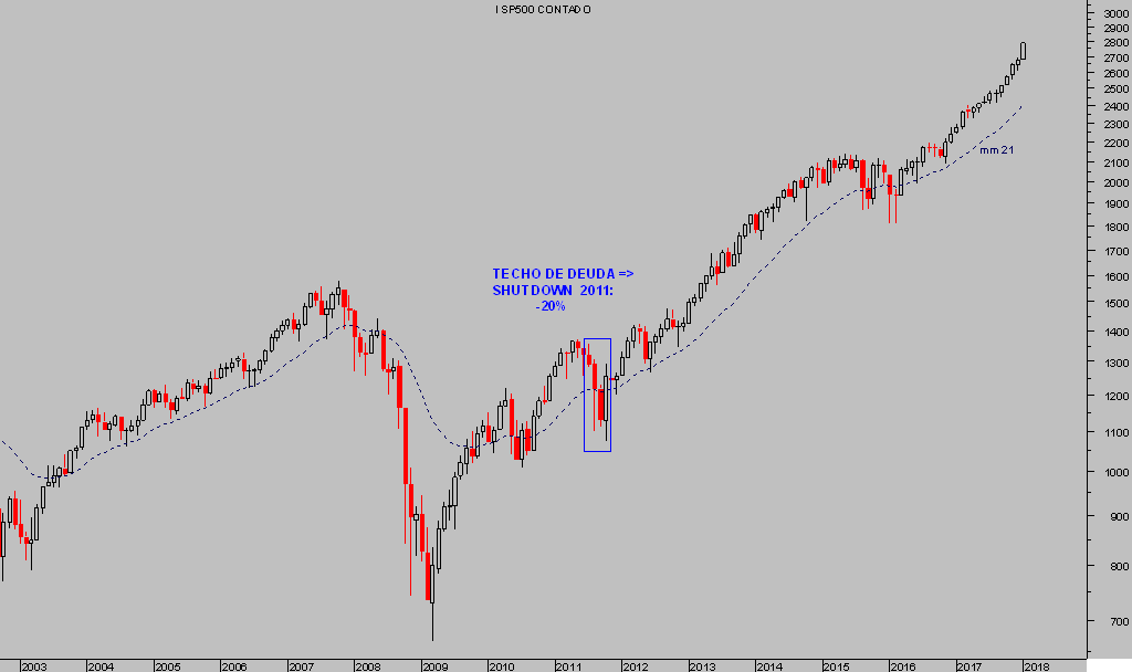 Para finalizar el post de hoy, recordar que el gobierno USA tiene de plazo hasta este próximo viernes para alcanzar un acuerdo con la oposición sobre el techo de gasto. De no ser así, a partir del día 22 de enero se producirá el temido «shutdown» de la administración americana, es decir, se quedará sin fondos para atender sus obligaciones y compromisos.